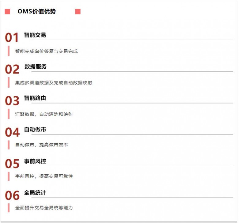 恒天OMS产品不仅具备智能交易管理功能,同时包含自动做市、事前风控、多数据集成、全局统计等亮点服务,灵活集成外部各类行情和上下行交易接口的同时能有效控制交易风险,智能分发交易路由,灵活处理交易分仓,实现交易的一站式智能处理!