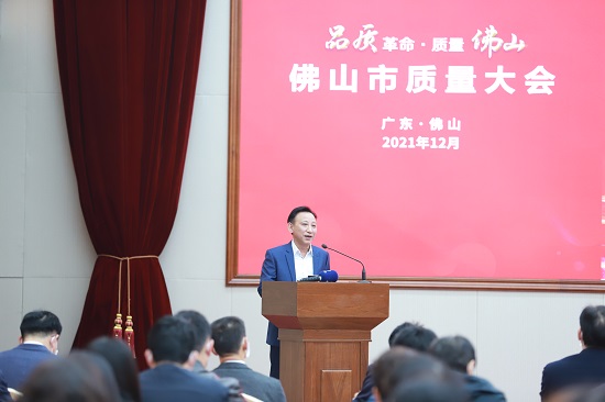 12月24日,佛山市2021年质量大会在佛山市机关小礼堂举行。佛山市市长白涛、副市长陈伟明,秘书长张开机、副秘书长吴小庆,以及各区政府主要领导、市有关行业协会、企业代表出席。