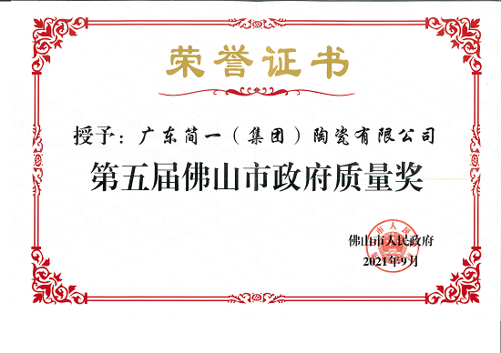 大会宣读了第五届佛山市政府质量奖等有关文件,简一凭借产品、服务、自主创新及综合竞争力等核心优势荣获佛山市政府质量奖。这是佛山市人民政府设立的最高质量荣誉奖,是市政府对简一企业综合实力的肯定和褒奖,也印证了简一品质经得起市场的考验。