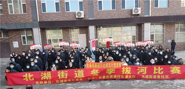 不畏冰霜,“绳”采飞扬!长春农商银行北湖支行携手北湖街道联合举办冬季拔河比赛活动。期间,来自北湖街道下辖11个社区的150余人参加本次活动。利用比赛间歇时间进行有奖问答,对宣传长春农商银行理财金卡、智能存款、满e贷、房e贷等热销产品起到良好效果。
