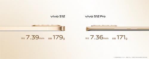 vivo S12系列进一步突破“轻薄”极限,将TW盖板厚度减薄约19%,FPC厚度减薄约29%,前摄与盖板间隙减薄约30%,电池容量升级为4300mAh。vivo S12 Pro整机仅重171克,薄至7.36mm;vivo S12机身采用了一体式航空铝直边中框,厚度7.39mm、重量仅有179g。