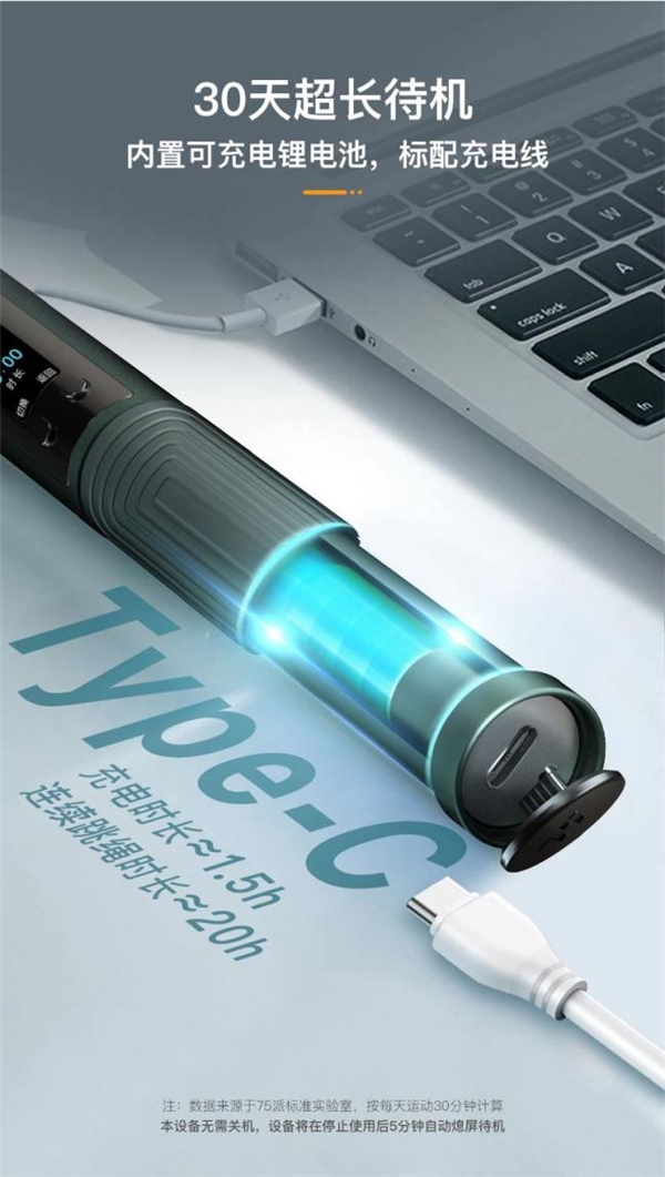 基于此,T30 Pro在75派T30家族定制的集运算、存储、G-sensor、蓝牙通讯、跳绳姿态检测算法于一体,运算能力达到 0.9 DMIPS/MHz的“擎科一号” 芯片。低耗运行、智能休眠、高速运算和云端同步四大功能,以及持续使用30天的超长续航能力之外,在感官上以及体验上也更为用心。