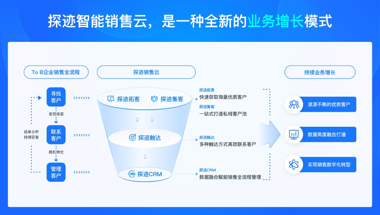 未来,探迹科技将持续践行销售数字化之道,赋能中小企业一同迈向销售数字化升级之路。