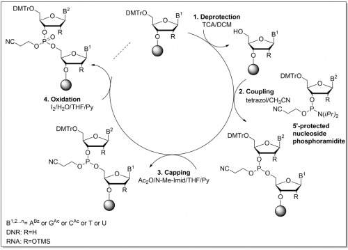 图4:以核苷亚磷酰胺为原料合成小核酸药物合成流程