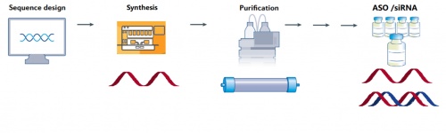 目前上市的小核酸药物反义寡核苷酸,siRNA,Aptamer等小核酸药物对核酸链进行大幅度化学修饰,该类药物只能通过化学合成方法制备,不需要用到细胞和酶等变量较多的生物因素,这就使其生产具有了更加可控的条件。但小核酸药物的化学合成依然是较为昂贵的。