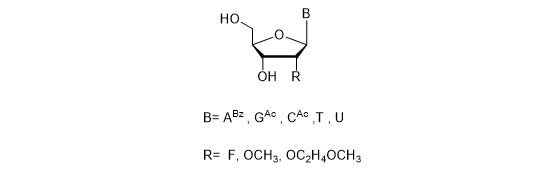 图2:小核酸药物使用的多种化学修饰核苷基础原料结构