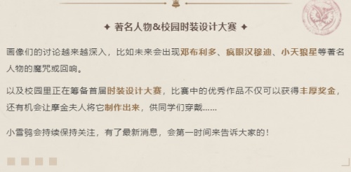 除了会定期设计新的时装供玩家选择,哈利波特手游更是把时装的制作交给了玩家,最近官方宣布正在筹备首届时装设计大赛,在时装设计大赛中脱颖而出的作品,除了能拿到丰厚的奖金,还会被制作成游戏内的时装,供所有玩家使用。无疑是给了玩家很大的想象空间,玩家可以尽情将自己的想法融入进去,无论是融合古风、潮流、重金属等元素,只要足够让人惊艳,都是有可能在游戏中出现的。