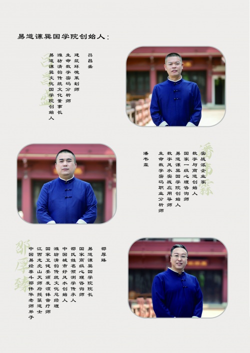 易道谦巽是一个以礼为文化的国学院,并始终致力于国学文化的传播和传承。同时为培养具有中国传统美德和国际视野的现代人,易道谦巽还推出大量课程。其中: