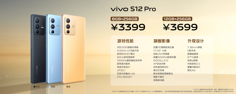 先锋影像旗舰vivo S12系列目前正在火爆销售中,8GB+256GB版本,2799元,12GB+256GB版本,2999元;vivo S12 Pro,8GB+256GB版本,3399元,12GB+256GB版本,3699元。可在vivo官网、官方体验店、京东、天猫、苏宁,以及线下各类合作门店购买。现在购机,以旧换新最高可享新机免单,还可获得价值600元的互联网礼包,福利多多不要错过!