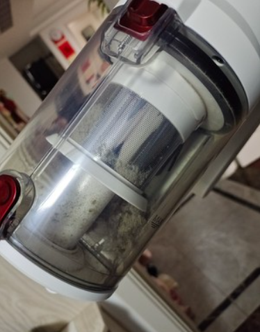 这个尘杯看起来容量很大,但是倒尘的时候十分方便,只要按动那个红颜色的按键,手不沾灰就可以将灰尘全部倾倒出来,不像同事家的其他牌子那样每次倒灰都需要更换一个集尘袋,使用成本得好几块钱。而且斐纳TOMEFON这个尘杯是可以反复清洗的,我用水冲洗了一下,冬天开暖气一晚上就彻底干燥了,尘杯的这些细节设计我是特别满意,这样用起来就没有什么使用成本,省事多了。