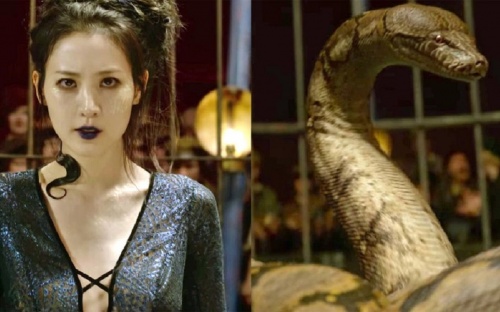 最后一位,纳吉尼。没错,就是大魔王身边的那条蛇。但其实在上个世纪,纳吉尼还是拥有人形态的。她受到了血的诅咒,会在一段时间在人兽之间随意变化,最后永久的变为蛇。格林德沃失败后,纳吉尼遇到了汤姆·里德尔,其中的故事我们不得而知。但是可以大胆猜测一下,变成蛇之后的纳吉尼彻底失去了作为人时候的能力,没有了可以沟通交流的伙伴,孑然一身。而设定里大魔王是会蛇语的,所以纳吉尼的追随看起来也是非常的合理。