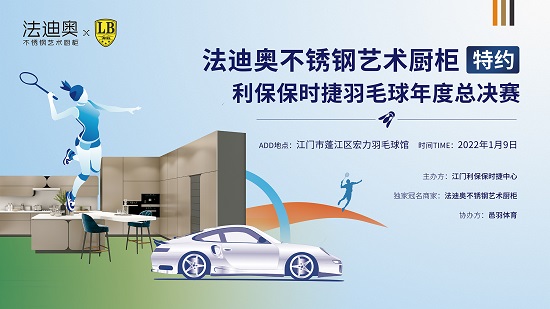 1月9日,法迪奥不锈钢艺术厨柜独家冠名、江门利保保时捷中心主办、邑羽体育协办的利保羽毛球联赛年度总决赛,将在江门市蓬江区宏力羽毛球馆盛大开赛!