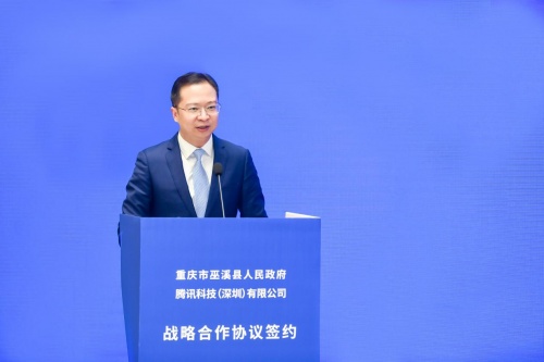 巫溪县人民政府县长王中表示,巫溪地处大巴山腹地,是国家重点生态功能县,境内山清水秀、资源富集,是三峡库区的“生态明珠”;历史悠远、人文厚重,是“巫巴文化”的故乡。近年来,全县上下坚持以习近平新时代中国特色社会思想为指导,深入贯彻落实党中央、国务院决策部署和市委、市政府工作要求,以脱贫攻坚统揽经济社会发展全局,脱贫攻坚取得全面胜利,10.65万贫困人口全部脱贫,150个贫困村全部销号,圆满实现全面建成小康社会历史性目标。进入新征程,巫溪正抢抓“国家乡村振兴重点帮扶县”等战略机遇,紧扣实现“绿色崛起”目标,立足“人文、生态”优势,推进交通建设、旅游发展、绿色工业、城市提升、乡村振兴,推动县域经济社会高质量发展。巫溪与腾讯公司达成共识,确定围绕“数字化、智能化”建设,为特色农业、文旅产业、数字乡村、数字政务、智慧养老等领域发展赋能,充分体现了腾讯公司强烈的社会责任担当,必将对我县巩固脱贫成果、推进乡村振兴、促进文旅融合、构建现代产业体系,产生重要而深远的影响。