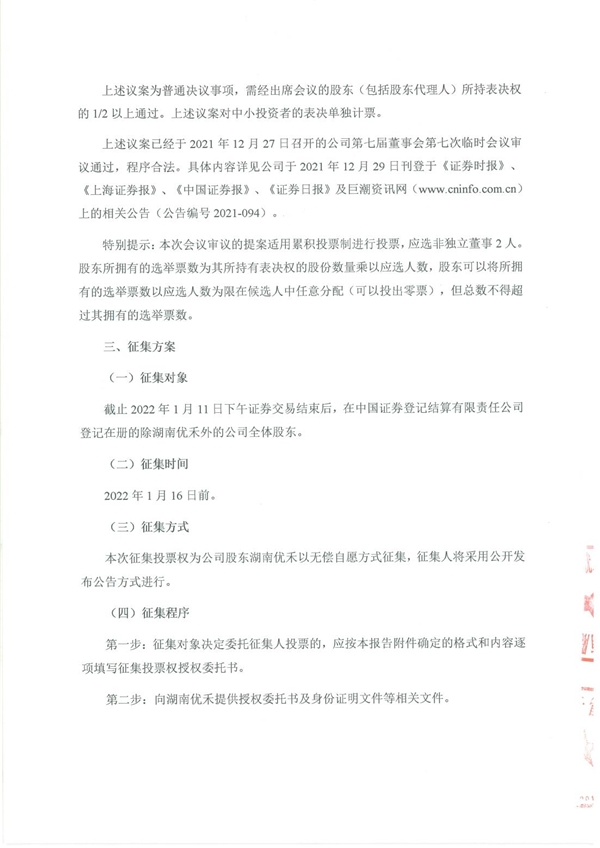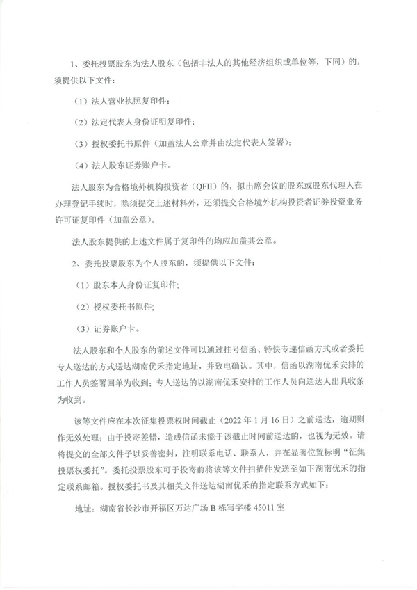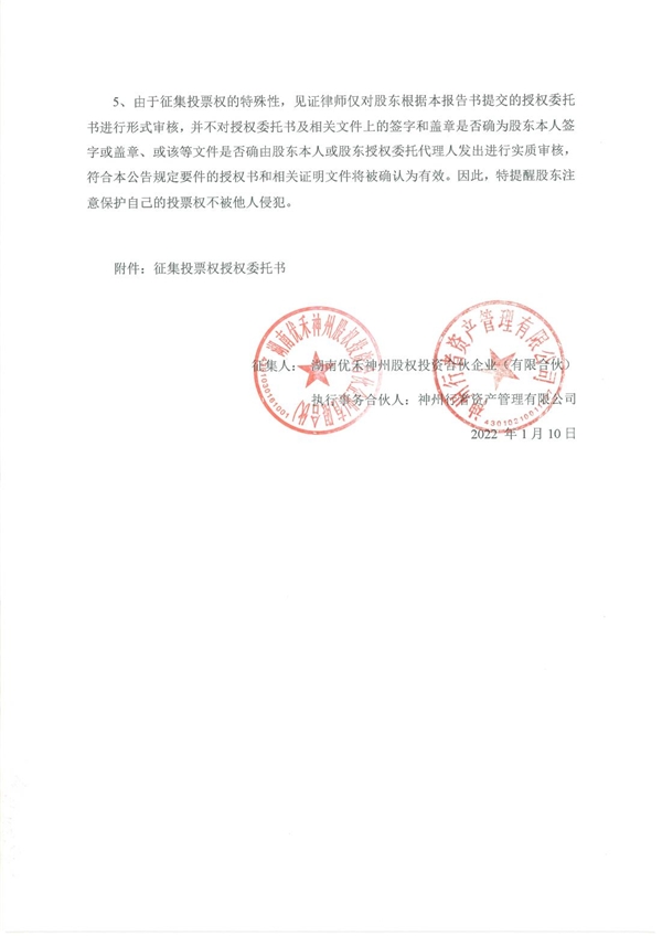以下为《湖南优禾神州股权投资合伙企业(有限合伙)关于公开征集投票权的函》全文。