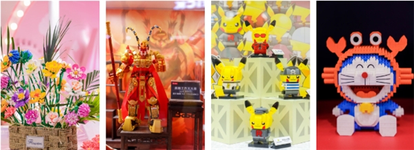 ▲市场热卖的积木品类在2021年深圳玩具展上大面积展示