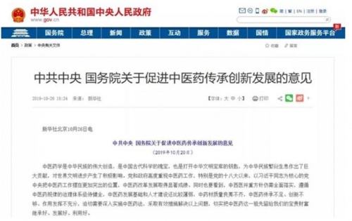 中医药产业是我国特有的构成医药产业的重要组成部分,国家对于中医药产业给予了特别关注。2019年10月,党中央、国务院印发《关于促进中医药传承创新发展的意见》,将传承创新发展中医药纳入新时代中国特色社会主义事业的重要内容,提出用3年左右时间,筛选50个中医治疗优势病种和100项适宜技术、100个疗效独特的中药品种,向社会发布;优化基于古代经典名方、名老中医方、医疗机构制剂等具有人用经验的中药新药审评技术要求,加快中药新药审批等促进中医药产业快速发展的举措。