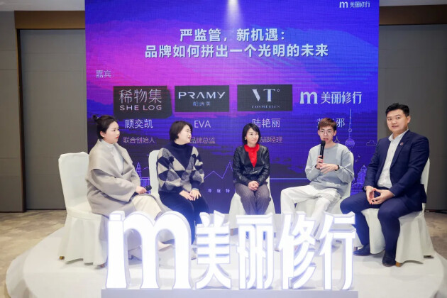 美丽修行(上海)消费者体验中心负责人李琼博士、美丽修行合伙人黄老邪、稀物集联合创始人顾奕凯、柏瑞美品牌总监EVA、薇缔市场部经理陆艳丽等出席了仪式,并就「严监管,新机遇:品牌方如何拼出一个光明未来」主题展开了交流研讨。