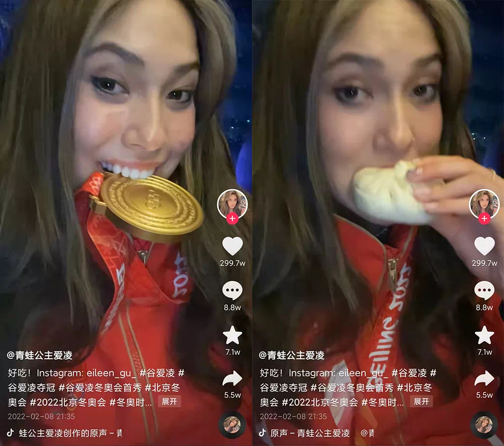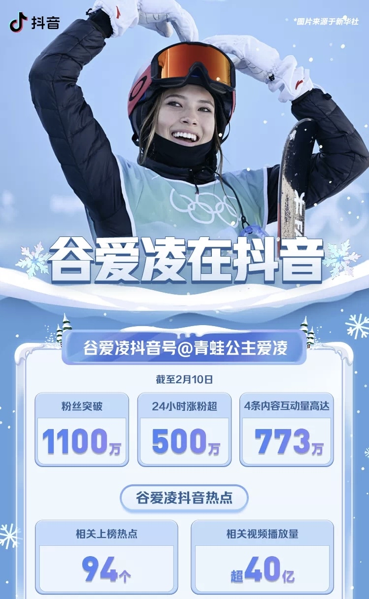 可以说,在本届赛事开幕仅一周时间内,“青蛙公主爱凌”就一举成为了抖音平台名副其实的冬奥会“顶流”。