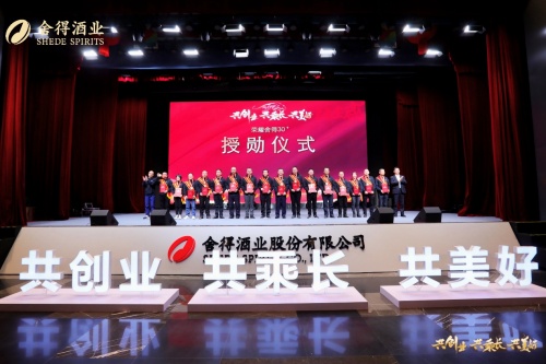 年会现场,舍得酒业颁发了多个奖项,全面表彰了在各个岗位上有突出成绩的先进团队及个人。“卓越销售团队”“卓越生产团队”“销售精英奖”“最佳赋能奖”“乘长贡献奖”“舍得未来之星”等荣誉,是对优秀工作者高度认可的最好注解。此外,舍得酒业还为与公司携手超过30多年的员工,包括舍得酒业原董事长、现复星酒业首席顾问李家顺,董事长张树平,总裁蒲吉洲等245名功勋员工授予了“荣耀舍得30+”荣誉勋章,激励更多员工与舍得携手向前长远发展。