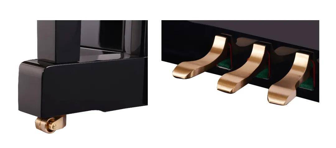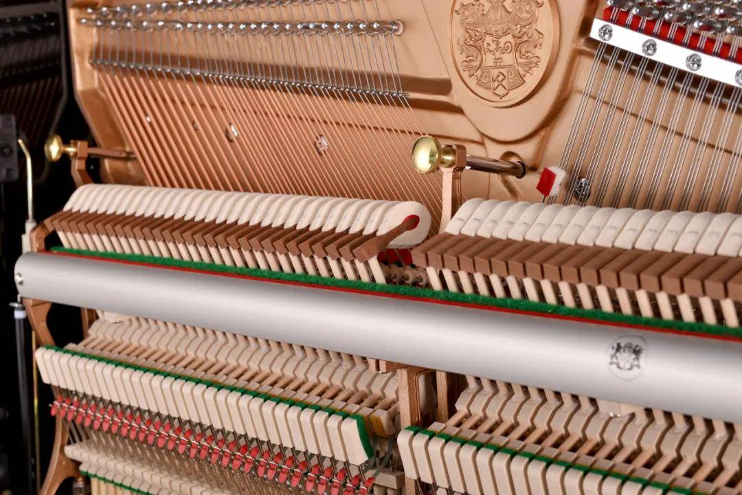弦槌:标配为德国优质毛毡,品质卓越。德国毛毡的密度高、弹性大,弦槌的质量与弦的波阻抗值更吻合,从而使弦槌击弦时声音更洪亮,音色更优美动听;