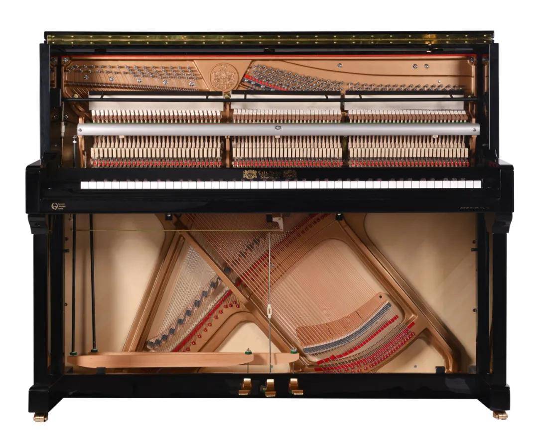 键盘:采用欧洲云杉,黑键为乌木红木双色实木键,更显高雅尊贵。琴键与击弦机的杠杆力度比例的调整,使弹奏更连贯、更舒适。每个琴键都逐一测重、配铅,严格把控琴键下落与回升的技术数据,使触键更为灵敏,能更准确的表达出细致微妙的触感变化和声学效果,适应专业演奏的更高要求;