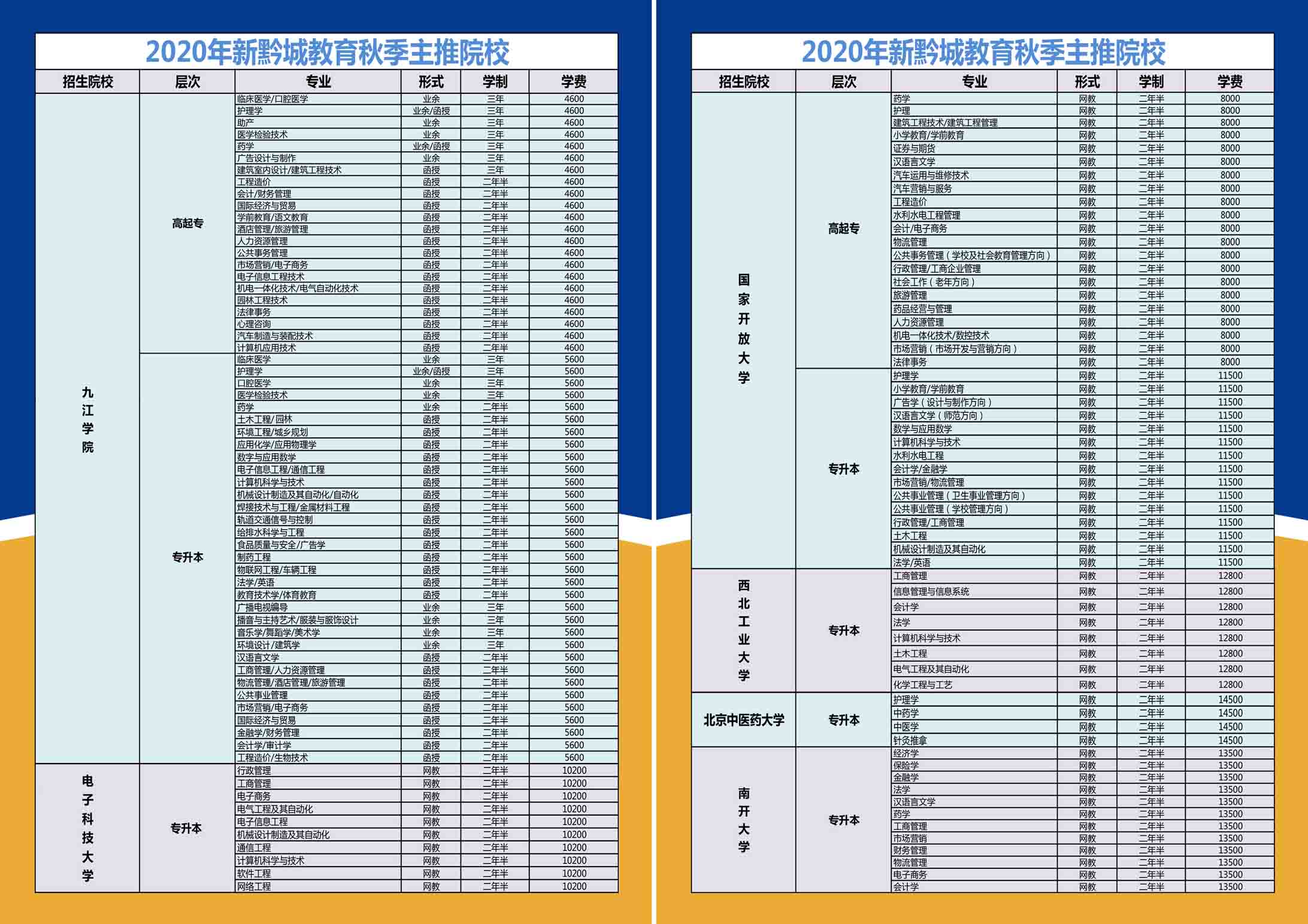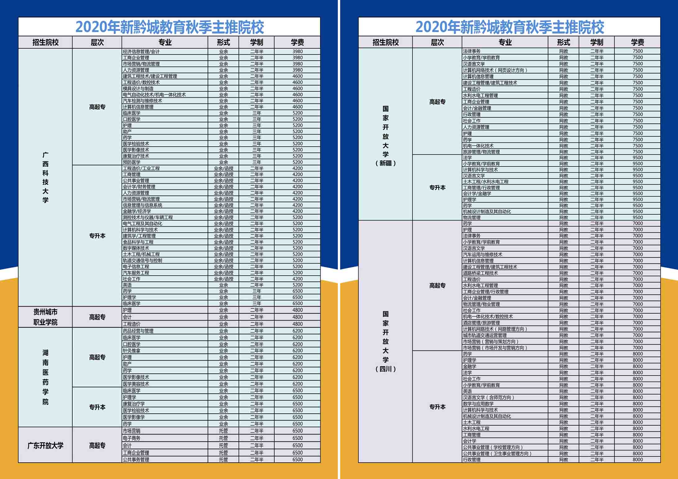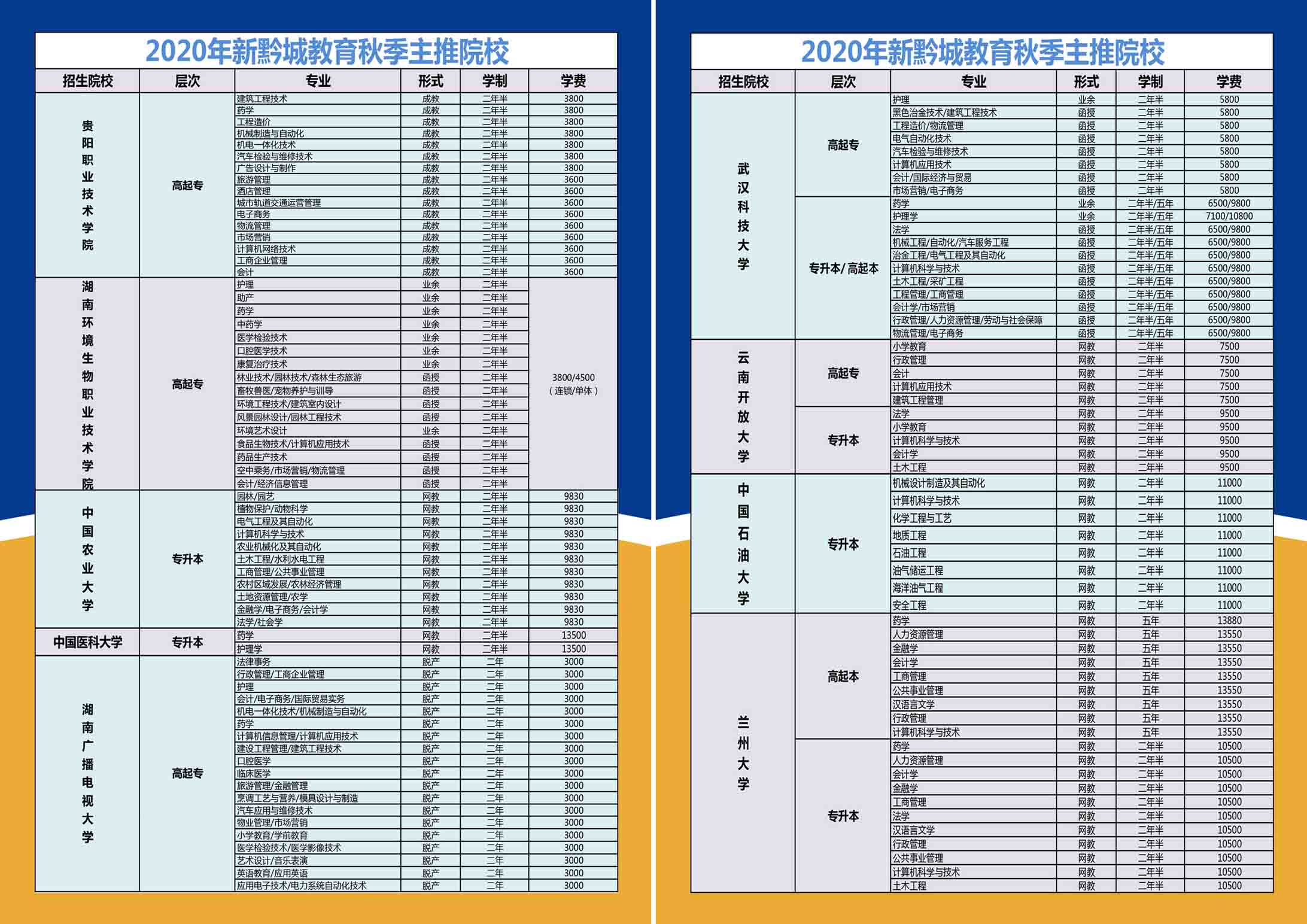 新黔城教育2020秋季学历提升院校和招生专业一览表