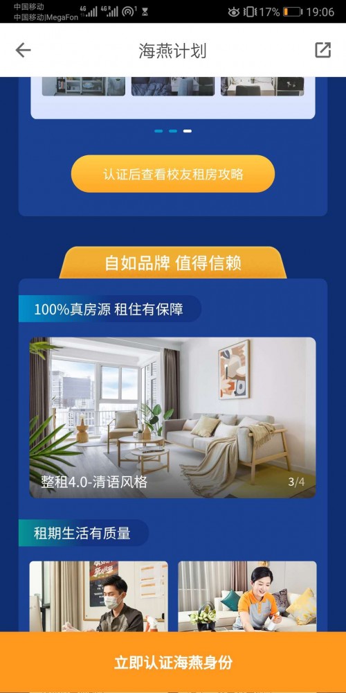 举措三:优质服务。成都自如租房现有VR视频看房服务,线上签约服务,0接触搬家服务,24小时管家服务等等。其中VR视频看房和线上签约服务帮助毕业生足不出户看新家并轻松签约;无接触搬家服务,毕业生无需到场即可轻松搬家。搬家视频全程直播且有回放,毕业生可以实时连麦,随时了解搬家动态;24小时管家服务,管家全天候在线,随时帮助毕业生解决租住过程中出现的难题;月度保洁服务,毕业生可享受消毒、杀菌全面保洁,房屋更洁净,健康有保障;家修服务,毕业生可以在线预约家修服务,家修人员及时响应,准时上门,为毕业生的租住生活提供坚强的后盾。