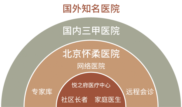 悦之府国际退休村,按照国际化医疗服务理念及标准创造的社区医疗平台,开展以家庭医生为主导的健康服务,当长者进入社区,即可拥有专属的家庭医生及专业护士服务团队对长者提供全面服务。配备内科、中医科、检验科、医学影像科等专业科室,定期邀请名医专家坐诊,同时与北京怀柔医院建立深度合作,实现双向转诊、绿色通道、远程医疗、专家会诊等特色服务,让医疗更专业更高效更便捷。