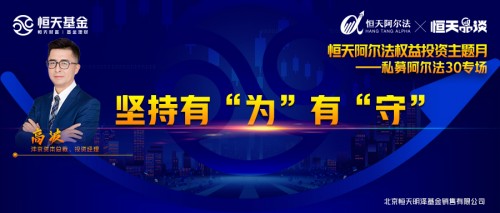 近日,由北京恒天明泽基金销售有限公司(以下简称“恒天基金”)举办的“恒天阿尔法权益投资主题月”活动正在火热进行。在9月17日的恒乐汇私募专场直播中,恒天基金正式发布“恒天阿尔法30计划”,宣布与市场核心机构为伴,丰富多元化的产品货架,提升客户权益服务体验,树立私募产品严选品牌,帮助客户获取超额收益。恒天财富总裁、中岩投资董事长崔同跃,北京和聚投资总经理兼基金经理李泽刚,上海泰旸资产管理有限公司投资总监刘天君,沣京资本总裁、投资经理高波共同在直播中为广大投资者就当下市场的投资趋势、投资机会进行了解读与分享。