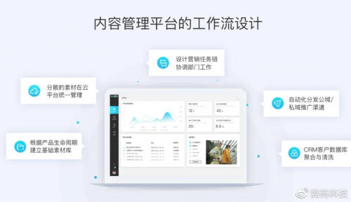 在整个营销链路中,不论是选号,还是优质内容的产出,越来越多的企业意识到内容管理的重要性,却缺乏正确的方法去落地。俗话说:“工欲善其事,必先利其器”。翼码为企业提供内容管理平台,实现内容、渠道、数据全方位管控,统一品牌形象,沉淀私域流量。