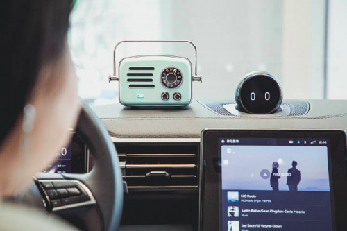 作为一款行走的电台音响设备,该产品预设了蔚来汽车 NIO Radio 专属频道,一键收听,车机同频,车上没听完的节目,下车还能接着听。