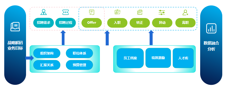 北森倡导端到端的流程一体化,从战略到组织,再到整个职位岗位体系及人力规划,以招聘需求为起点,贯穿到员工入转调离的一体化场景中去,并能归结于员工档案绩效、人才库等,以此打造一个员工数字化体系,实现从“用工”到“员工”的全生命周期管理流程一体化。