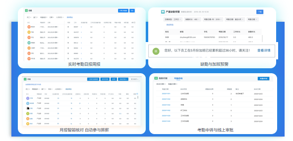 北森的平台支持各种自动化报表与数据统计,如实时考勤日报周报、缺勤与加班预警、月报智能核对自动参与算薪、考勤申诉与线上审批等,通过这些智能精准的假勤数据,帮助一线管理者轻松实现高效核算以及风险规避。