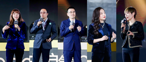 从左至右分别为:新氧科技副总裁屈芳、新氧科技副总裁蔡睿、新氧科技CTO李学健、新氧科技副总裁刘蓉、新氧科技副总裁李薇