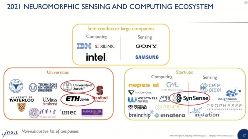在Yole发布的《2021年类脑市场与技术分析报告》中,SynSense时识科技也获得高度关注,被称为「唯一一家横跨感知与计算两界的类脑智能芯片公司」。