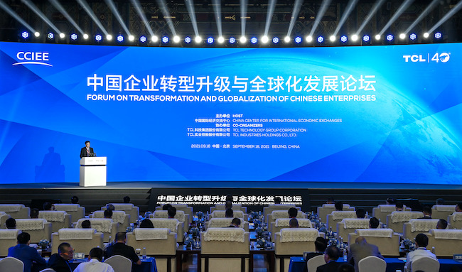 9月18日,由中国国际经济交流中心和TCL联合主办的“2021中国企业转型升级与全球化发展论坛”在京举办。与会嘉宾围绕“产业转型升级”“全球化”“产业链全球布局”等议题展开深入讨论。中国国际经济交流中心常务副理事长、国家发展改革委原副主任张晓强致辞,中国国际经济交流中心副理事长、河南省人大原副主任张大卫主持会议。国家发展改革委、科技部、工业和信息化部、商务部等有关部门领导以及专家学者、企业家、智库代表100余人出席会议。