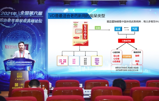 “为什么和黄的复方丹参片好呢?做中药的,质量控制是最关键的,在一个中药里成分很多很复杂,真正起关键作用就是五六个成分,而复方丹参片相对成分比较简单,都已经非常清楚,所以在市场上都有很好的占有率。随着时间的推移,复方丹参片一直在改善,而且持久,与西药多奈哌齐对比起来,效果是更好的。在白云山和黄做的临床研究中发现,随着使用时间延长,患者发生中风症状的次数明显减少。” 暨南大学脑病个性化防治跨学科研究所所长陈刚教授在报告中提到。