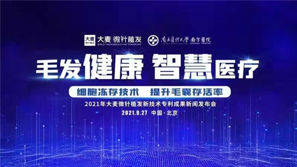 9月27日,中国首都北京新闻发布厅,以“毛发健康·智慧医疗”为主题的2021年大麦微针植发新技术专利成果新闻发布会圆满结束。会上,大麦微针植发携手南方医院科研组重磅推出专利科研成果——毛囊细胞活性培养液(IS)技术,该技术核心优势为可以让离体后毛囊细胞活性从4小时延长到8小时,活性提升一倍,大大提升毛囊存活率。