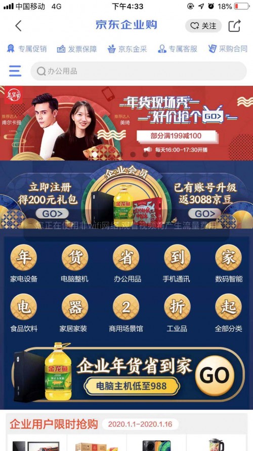 就此,京东企业购在年货节期间为中小企业采购推出“直播导购”的服务模式,通过整合700万中小企业用户画像和采购行为偏好,以直播为载体打造场景化的采购导购服务。聚焦年末采购三大核心场景,让中小企业采购人员能够轻松获取成熟的场景化采购商品方案,帮助采购人完成相应场景下的最优商品选择,大幅提高中小企业的采购效率。