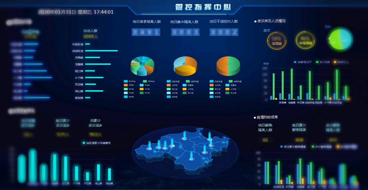南威软件旗下威盾科技集团依托智能感知大数据平台、人像平台、智能车辆管控平台等实战应用,协助省、市、县各个层级政府与公安机关,通过大数据技术手段实现对疫情高发地区入闽人员、车辆信息进行轨迹分析、落脚点研判,辅助甄别是否为去过疫情高发地区的人员或与之有接触史的人员。同时,利用大数据可视化技术实现对人员档案信息、工作组出动人员情况、当天疫情排查累计数、疫情管控成果等信息的快速统计分析,助力政府高效完成疫情防控与指挥决策。