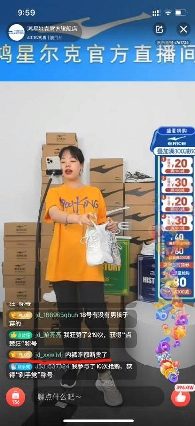 你无法想象鸿星尔克现在到底有多火:7月24日,热情的网友涌进京东“谢谢你,为国货点赞”直播间,鸿星尔克等品牌多款商品卖断货,就连鸿星尔克的内裤都被抢购一空。没抢到的网友甚至喊话:“鸿星尔克实在没货了,把鞋盒发我吧……”
