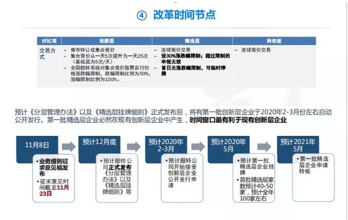 11月,证监会发布《非上市公众公司监督管理办法》《非上市公众公司信息披露管理办法》等规定,全国股转公司同一时间发布了《股票向不特定合格投资者公开发行并在精选层挂牌规则(试行)》《股票定向发行规则》《分层管理办法》《挂牌公司信息披露规则》《挂牌公司治理规则》和《股票交易规则》等6条改革规则,并向社会公开征求意见,期盼已久的精选层遴选标准终于落地!