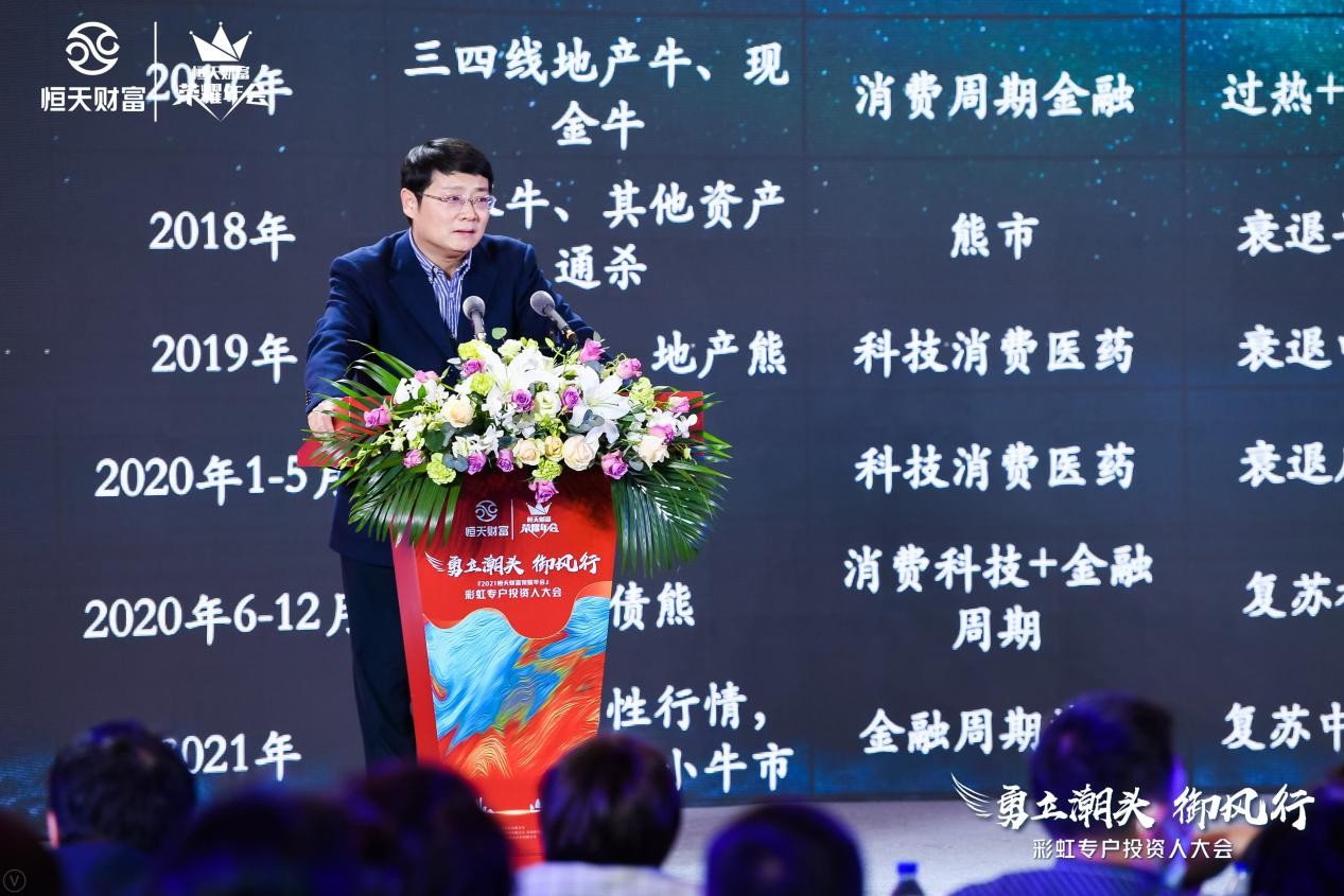 “勇立潮头御风行”2021年恒天财富专户投资人大会日前圆满落幕,本次峰会特别邀请著名经济学家、知名学者、行业领航人、投资精英等齐聚一堂,以全球战略视野作为切入点,分享前沿投资策略,探寻跨越周期穿越牛熊的稳健资产,共同把握新时代背景下的投资机遇。会上,如是金融研究院院长、首席经济学家管清友发表主旨演讲,讲述市场周?期轮动下,如何视透?2021市场动态,并指?明大类资产的未来?趋势,给投资者们带来了一场干货满满的视听盛宴。