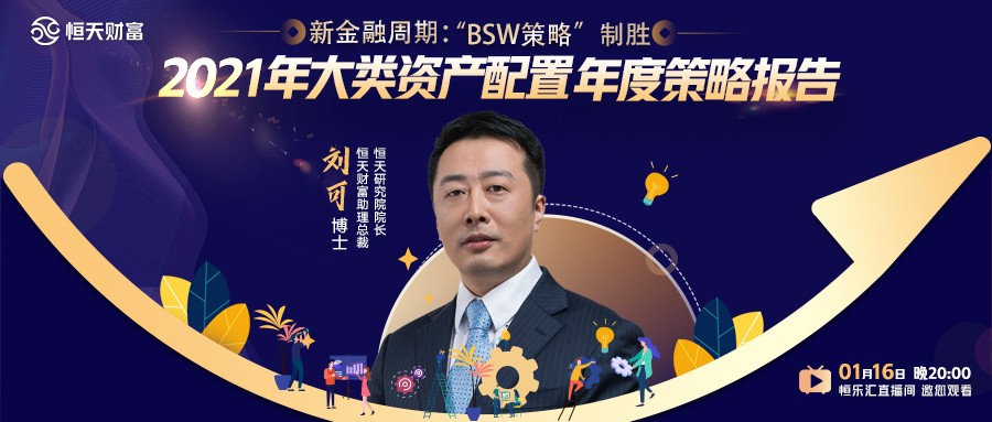 1月16日,恒天财富助理总裁、恒天研究院院长刘可在恒乐汇直播间带来《新金融周期:“BSW策略”制胜——2021年大类资产配置年度策略报告》主题分享,从四个维度深层次进行2021经济展望与大类资产配置策略剖析。