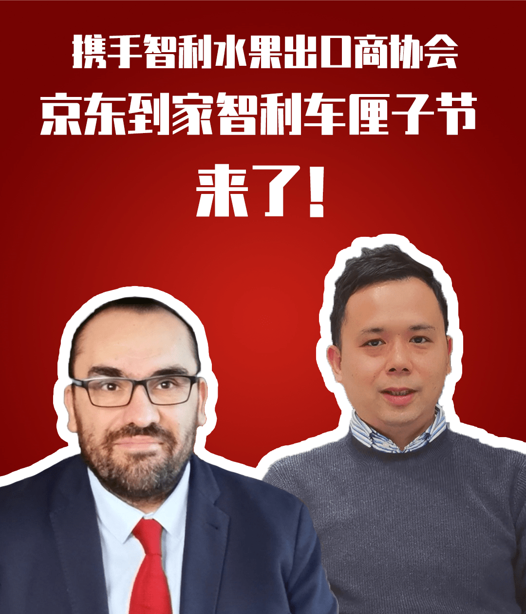 京东到家生鲜业务部负责人杨波与智利水果出口商协会欧亚市场总监夏瑞夫携手开启京东到家车厘子节