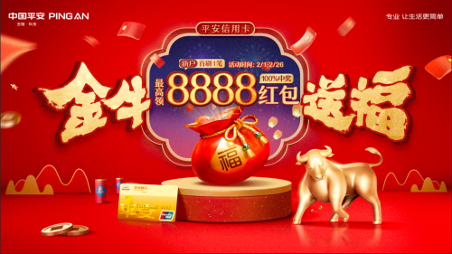 如何为就地过年的民众提供更好的消费服务?作为民生消费金融服务重要成员,平安银行信用卡春节不打烊,联合“88”大牌合作商户推出“金牛送福“春节主题活动,送出最高“8888元”春节红包,并为持卡人提供覆盖衣食住行玩等各类本地生活消费场景的优惠福利,让就地过年不将就、年味十足。
