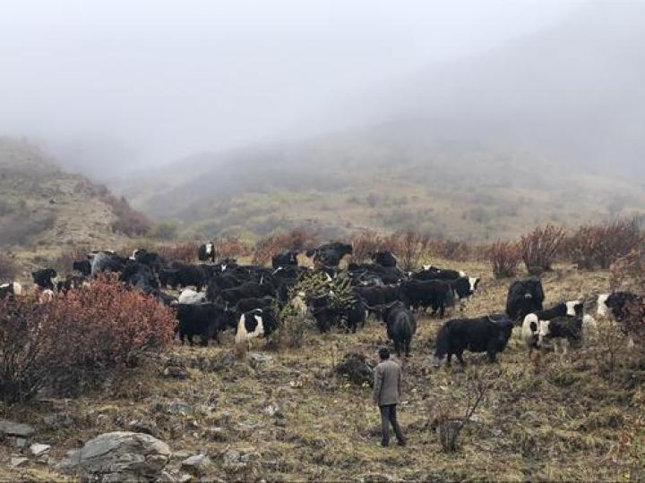 图为罗彭措和他的牛群。钱林浩 摄