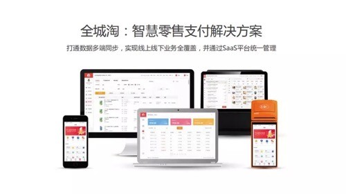 依托开店宝集团旗下开店宝公司的全国银行卡收单资质优势,全城淘为中小微商户提供了银行卡支付、聚合扫码支付等综合支付解决方案,以支付为入口,以支付收款设备为载体,积累线下商户。基于标准的开放API接口,全城淘能够将支付核心服务开放到产业服务生态中,以支付服务为基础,真正赋能线下商户,解决商户们的刚需问题,即提供集会员管理、营销推广、进销存管理等于一体的信息化服务。