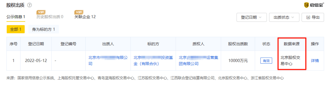 北京股权交易中心作为国内领先的区域性股权市场运营机构,其数据价值不容小觑。目前,该中心份额质押登记规模已达143.90亿元,质押融资金额307.14亿元,托管有限合伙企业财产份额突破475.14亿元。如今,这些高质量、高价值的数据通过启信宝等平台实现实时查询,让市场各参与方能够全面了解有限合伙份额质押动态,有效规避交易风险,为决策提供了更有力的支持。