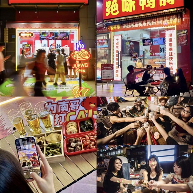 锚定“夜宵”这一核心增量场景,绝味品牌团队首先在全国范围内启动“出摊计划”。这一举措巧妙地将标准化的连锁门店,升级为极具“烟火气”的夜市摊位,让消费者在最具氛围感的场景中,沉浸式体验“夜宵”的独特爽感;数据显示,活动期间,“全国出摊”门店的夜间销售额环比提升高达20.08%。